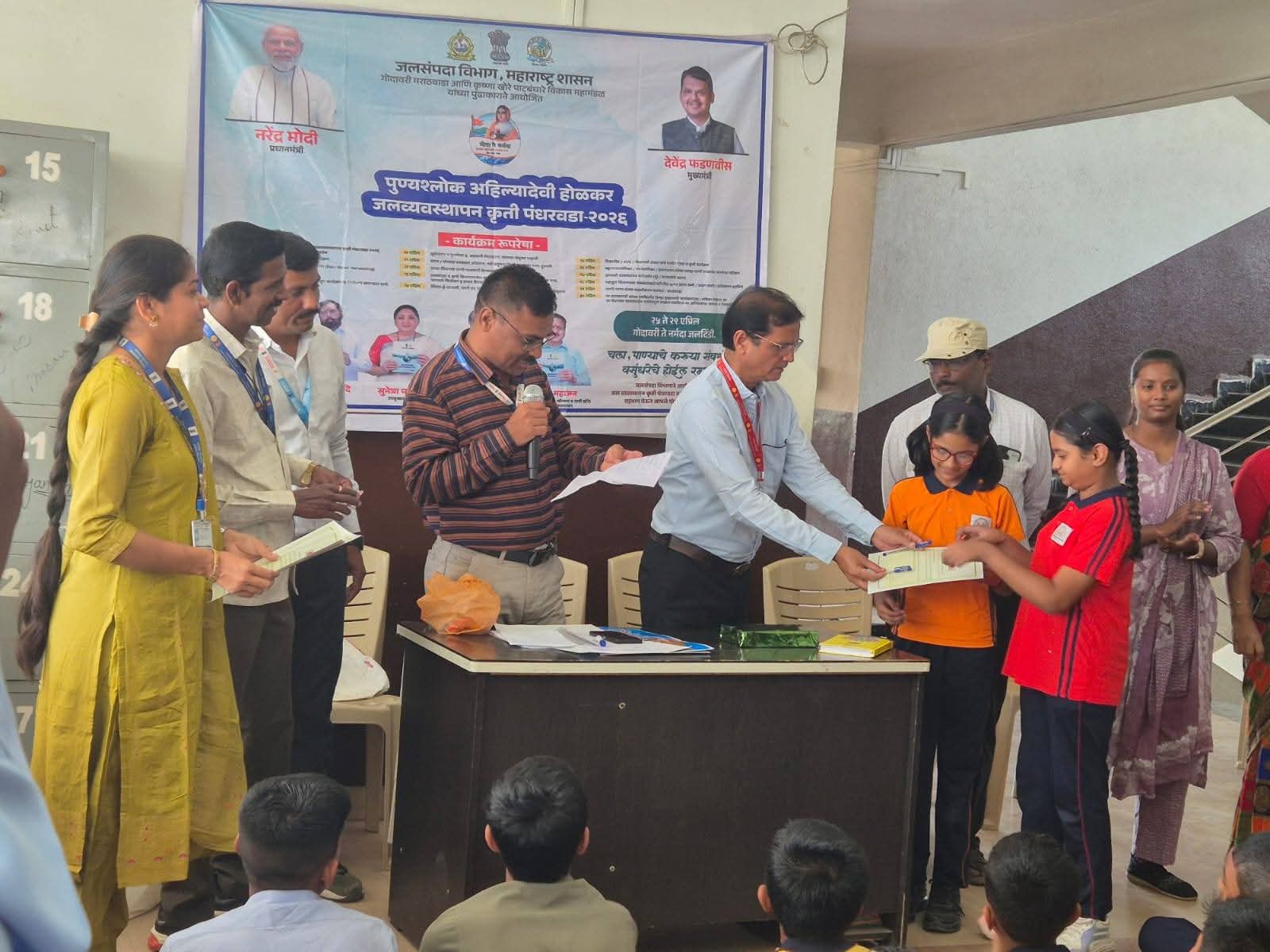 पुण्यश्लोक अहिल्यादेवी होळकर जलजागृती कृती पंधरवडा २०२६ निमित्त साई एन्जेल इंटरनॅशनल पब्लिक स्कूलमध्ये विद्यार्थी, शिक्षक व कर्मचाऱ्यांनी जलप्रतिज्ञा घेतली. यावेळी पाण्याचे महत्त्व, पाणी बचत व नियोजनाबाबत विद्यार्थ्यांना मार्गदर्शन करून पाण्याचा योग्य वापर करण्याचे आवाहन कार्यकारी अभियंता जगदीश पाटील व उपकार्यकारी अभियंता उमेश कंगणकर यांनी केले.